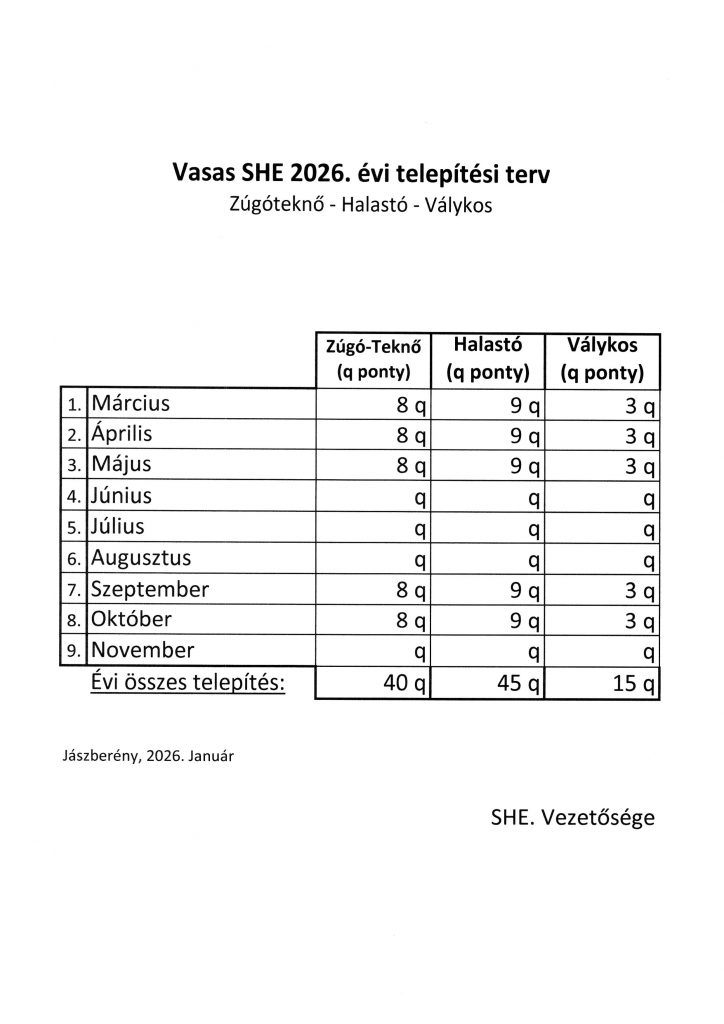 Telepítés 2026                Zúgó-teknő                Halastó                    Válykos